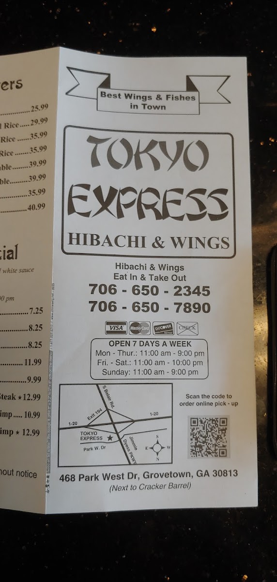 Welcome to Tokyo Express - Grovetown, a culinary gem nestled at 468 Park W Dr. This vibrant eatery offers a menu brimming with fresh, expertly prepared dishes, all made to order. Notable highlights include their savory wings, available in a selection of flavors, perfect for sharing with friends. The fried rice offerings, from succulent shrimp to hearty steak and chicken varieties, promise delightful, hearty meals that won't leave you hungry.
